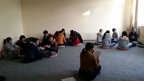 小组分享环节开始了。孙利老师先根据报数的方式将大家分为若干个同等人数的小组,组内再进行看法交流。乌龟和乌鸦的升级版再一次将气氛调到了白热化的程度,大家在游戏中玩得不亦说乎。小组成员来自各个年级,思维和角度的不同造成的碰撞,让讨论环节平添了几分紧张感。在和乐的小组分享环节中医者自医活动也走向了尾声。