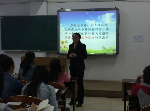 在简单的知识性讲解之后,李明菊还通过结合“思想与生活”课程中的一小章节,详细的讲诉了应如何构建生动课堂的思路,也让同学们能够加清晰的了解。