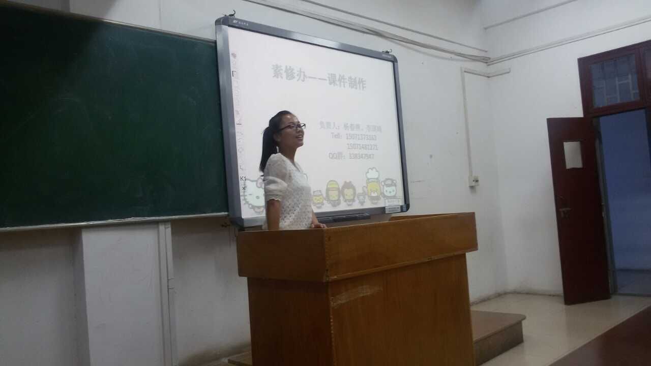 本网讯【通讯员 杨春燕、李琪琦】5月14日晚18:30,素质修炼活动“课件制作”项目在5206教室举行集中培训,项目负责同学杨春燕和李琪琦主持活动。