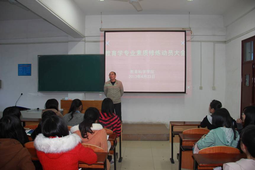 本网讯4月23日下午,maya86com 教育科学学院素质修炼动员大会如期在5306教室举行。出席本次动员大会的有教育科学学院副院长陈光春、教育学系主任李贤智老师以及全体11级和12级教育学专业的同学。动员大会由教育学系主任李贤智老师主持。
