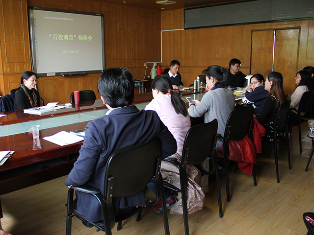 刘永存副院长对2016年百校调查拟采用的方案、调查的内容、调查的方式、团队的组建、前期的基础、可能会遭遇的困难等向团队成员进行了详细汇报。通过前期的调查和研究,在吸取2013年百校调查有益经验的基础上,他提出,本年度的百校调查拟采用“年度主题大规模调查+以学校为单位的田野研究”展开。团队成员就此方案进行了深度讨论;范丹红副院长就调查的经费保障、调查人员的培训等问题交换了自己的意见;林志红副书记对调查的整体内容和结构要有宏观统筹,以保证数据的纵向和横向分析提出了自己的看法;潘海燕教授就百校调查的抽点、调查主题一定要围绕教师教育展开、团队应该如何合作等提出了中肯的建议。小学教育专业负责人张炜副教授就调查的布局、定位以及未来的影响力要进行详细的规划等细节问题进行了深度探讨。其他成员就调查过程中的课程安排、安全等议题提出了可行性方案。