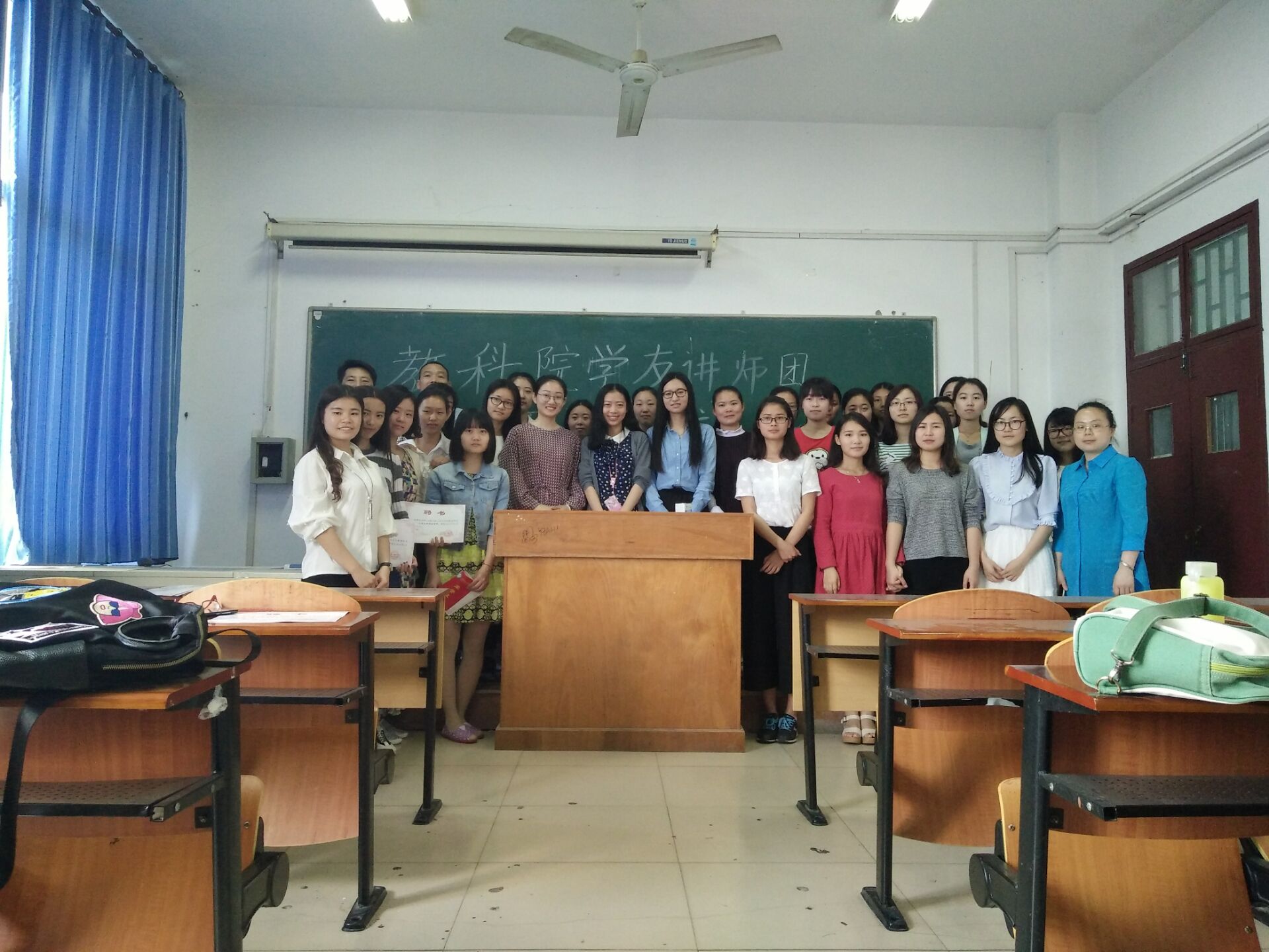(林书记、李老师与讲师团成员)