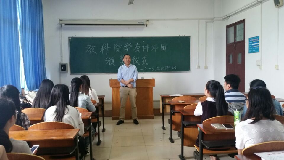 (通讯员:许雪莹)2016年4月15日中午12时,在五号教学楼5305教室举行了教育科学学院第一届“学友讲师团”颁奖典礼。典礼由教育科学学院学生党支部组织委员高利主持,教科院林书记、辅导员李小兵、代黎明老师以及全体获奖学生出席了此次典礼。