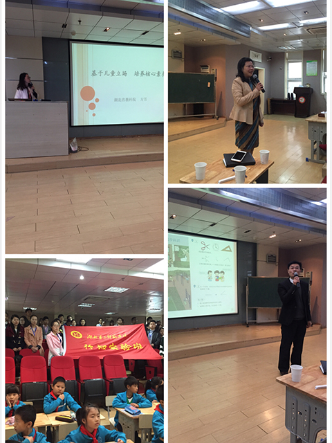 2016年10月24日上午,教育科学学院与光谷第八小学第一次共同开展的小学数学教研活动在光谷八小报告厅顺利举行。教育科学学院范丹红副院长、刘晶晶博士,省教科院专家方芳老师,及光谷八小赵云校长、区教发院领导、教研员、区内教师代表,以及我院行知班的同学参加了本次活动。