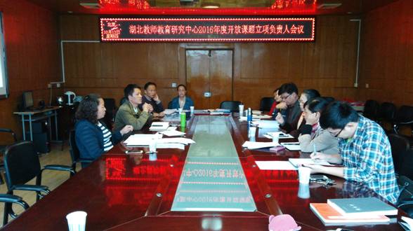 10月13日下午,省级高校人文社科重点研究基地湖北教师教育研究中心在我院会议室召开了2016年度开放课题立项负责人会议。教育科学学院院长、湖北教师教育研究中心主任张红梅出席会议并讲话,课题负责人潘海燕、范丹红、陈光春、汪丞、肖凯、长阳实验小学漆昌琼,长阳县教育研究与教师培训中心刘昌菊,光谷五小左军娥等老师参加了会议,刘永存主持会议。