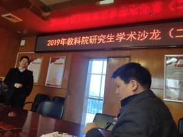 (通讯员:高莉)11月28日下午15:40-17:20,2019年度教育科学学院第二次研究生学术沙龙会议在五号教学楼四楼会议室举行。教育科学学院院长张红梅,副院长郭三玲,教授潘海燕、张炜,副教授陈荣、李菁、万爱莲、余娟以及2018、2019级全体研究生和两名本科生参加了此次沙龙。此次沙龙由陈荣副教授主持。