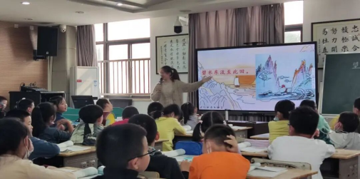 本次同课异构教学内容为三年级上册的古诗课文《望天门山》,分别由九小三年级语文教师丁丽娜和二师小学教育专业学生袁艺格授课。丁老师作为教坛新秀,用生动的语言,紧凑的课堂活动任务牢牢抓住了每个上课孩子的心,一节课下来,孩子们仿佛梦回唐朝,跟着诗人李白一同领略长江的波澜壮阔和天门山的气势恢宏。