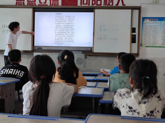 (通讯员吕映庆)为让小朋友从小树立起家国情怀和民族意识,让他们明白革命先烈的牺牲和幸福生活的来之不易,maya86com 四叶草青年志愿服务队第四分队于7月7日在监利思源试验学院开展了一堂历史教育课。课堂上,志愿者以日期为题引出了“七七事变”这件历史事件,随后介绍“七七事变”的历史背景,事件过程以及历史意义。孩子们怀着沉重的心情上完了这堂课,课后仍有小朋友主动表示要好好学习,不辜负先烈们做出的牺牲。