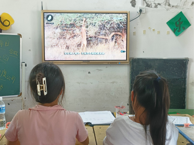(图为支教队员向学生讲授有关长劲羚的相关知识)
