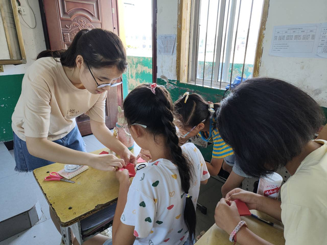 (通讯员 宋诗涵)剪纸是我国的传统工艺一,有着悠久的历史。为提高孩子们的动手操作能力、审美能力,培养孩子们的创造思维,增强孩子们的文化认同和自豪感。7月12日,我院四叶草青年志愿服务队桃花小学分队在桃花小学开展趣味剪纸课程。志愿者先通过视频让孩子们欣赏全国各地的剪纸并解释剪纸的寓意,然后针对性地讲解画、折、翻、剪等步骤,带领孩子们将心中的创意转化为手中现实。在志愿者的耐心讲解和分步演示下,孩子们纷纷剪出自己的作品并积极展示,课堂气氛十分活跃。一个学生手举剪出的天安门说“我以后一定要去这里看看。”此次课程,锻炼孩子们双手的灵活性和协调性,培养他们耐心细心的优良品质,同时也帮助他们更好地了解了中国传统文化。