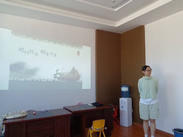课堂上,志愿者为孩子们普及端午节的由来、习俗等知识,带领孩子们了解屈原、伍子胥的故事,培养孩子们爱国之情和民族自信心。龙舟不仅仅传承了中国传统文化,还蕴含着团结、拼搏、进取的体育精神和理念,志愿者让孩子们借助椅子模仿划龙舟的场景,感受端午节丰富的节日氛围与文化内涵。中国文化源远流长,深入挖掘传统节日的文化意蕴,有助于孩子们更真切感受文化力量。