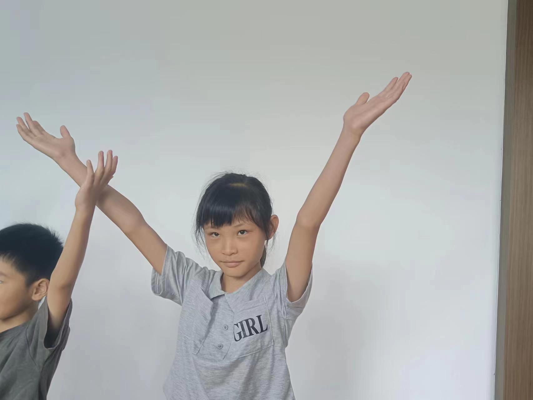(图为学生在做身体运动游戏)