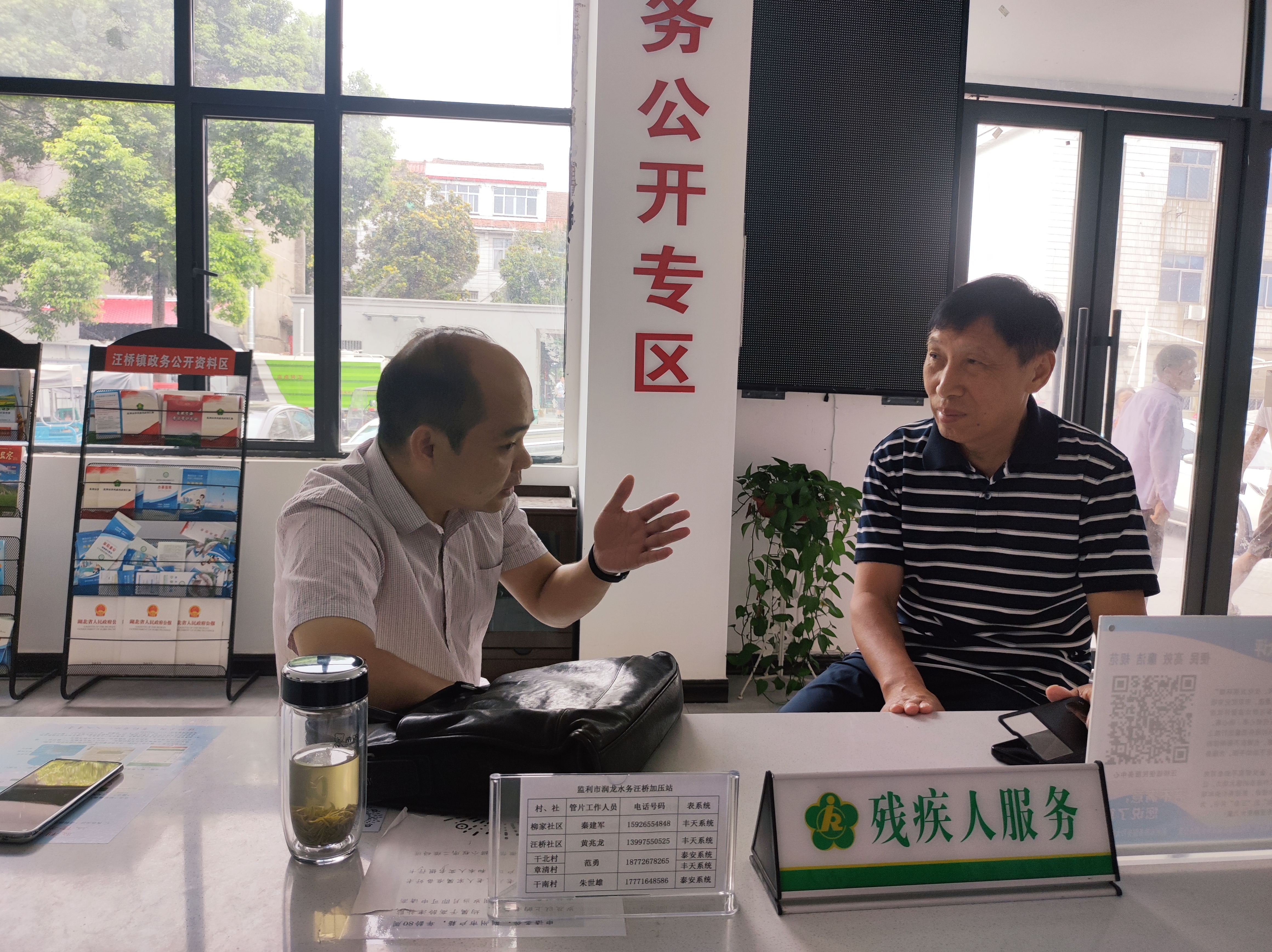 (图为周理事长与村支书沟通交流)