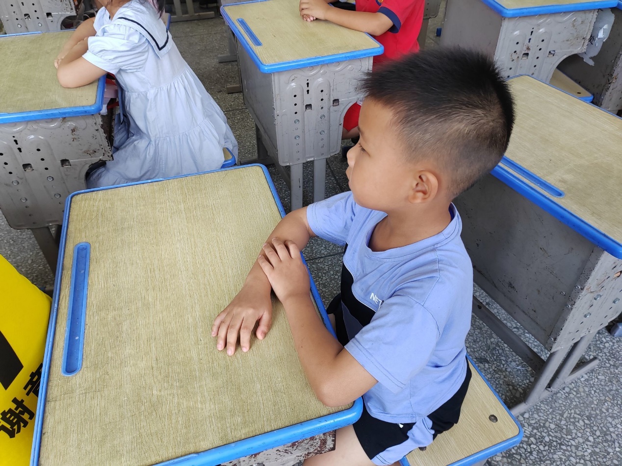 (图为学生认真听志愿者讲课)