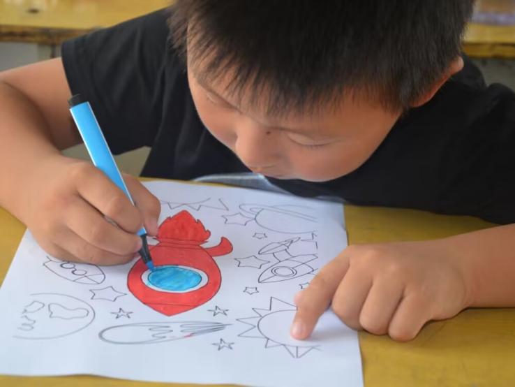 (图为学生自己动手绘画太空)