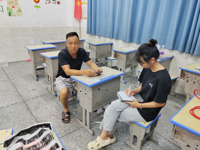 (图为志愿者吴枫枰对学生家长进行访谈)