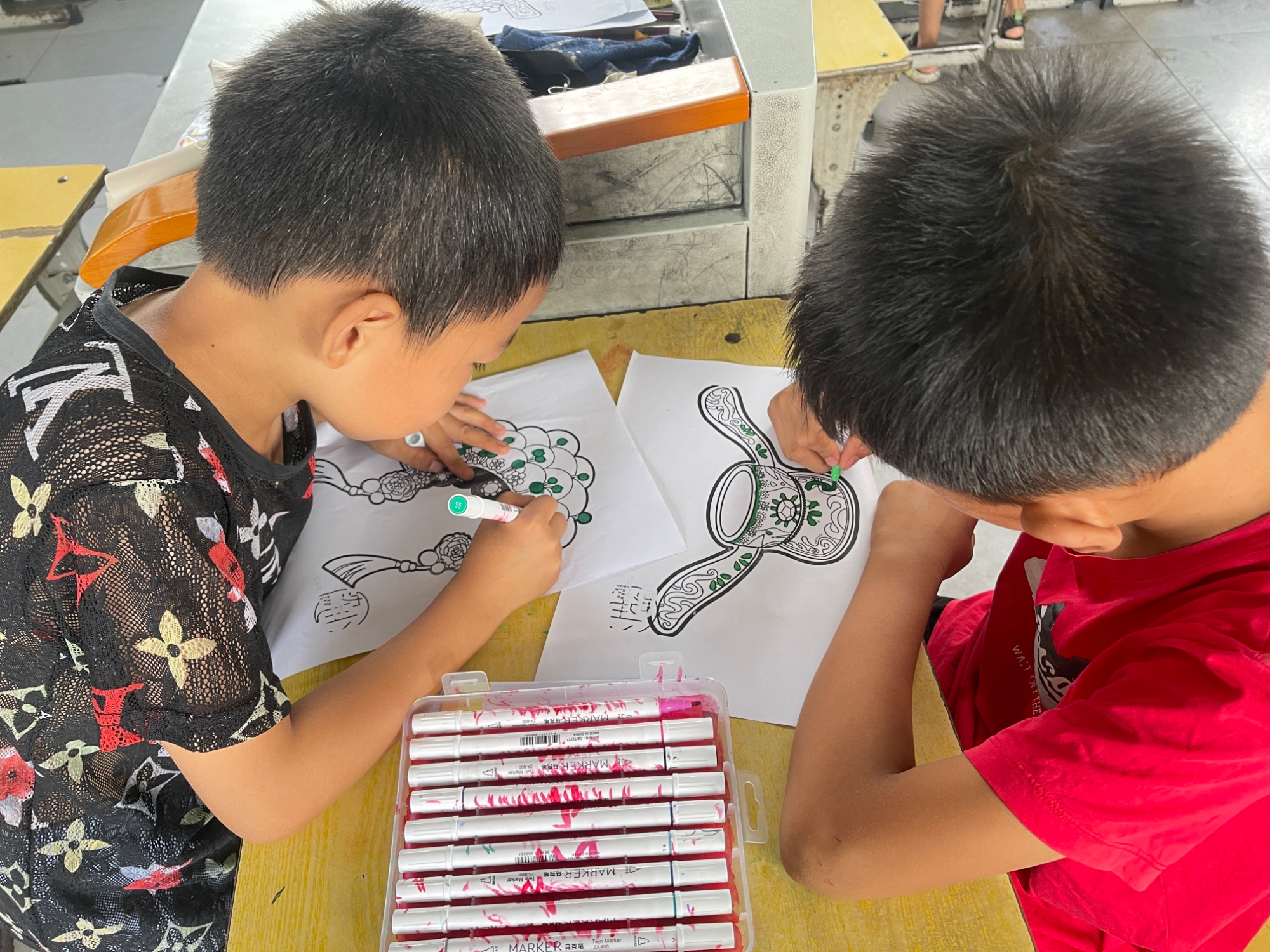 (图为同学们在给图片上色)