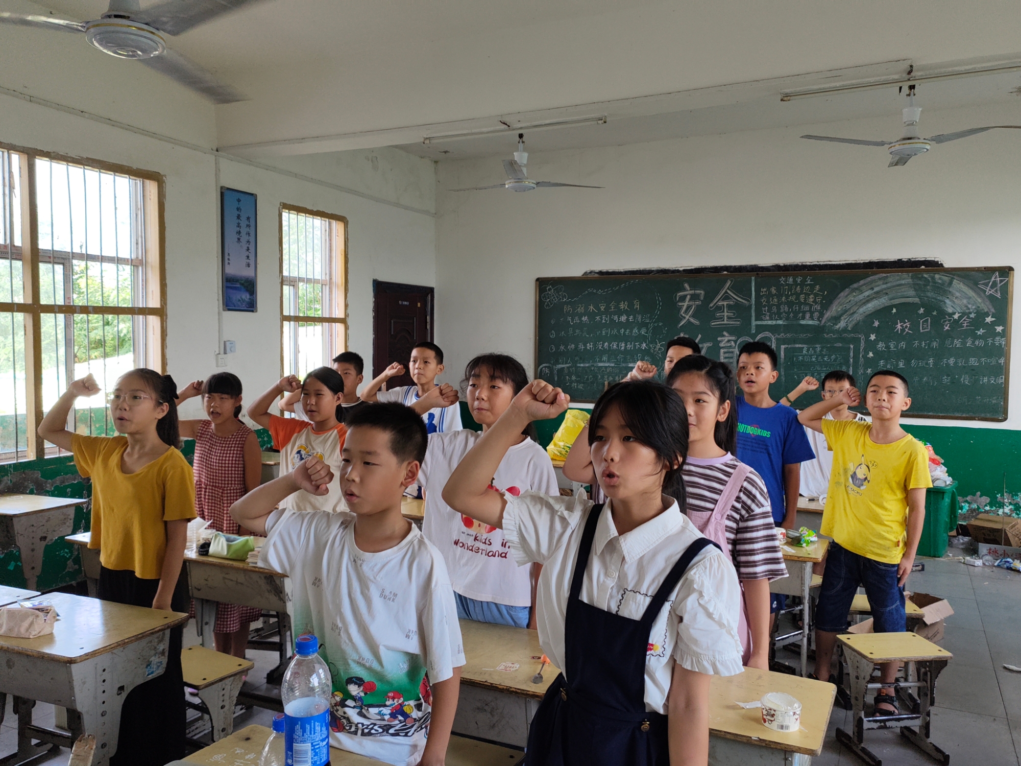 (图为同学们在唱国歌)