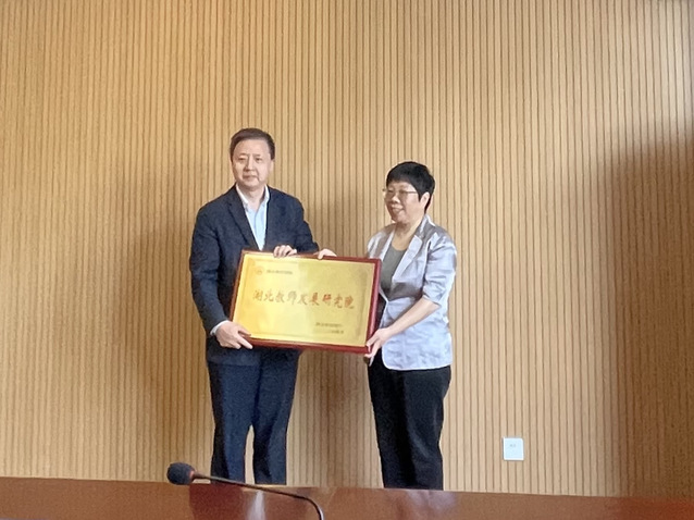 本网讯(通讯员刘菲)5月9日上午,校党委副书记胡兴参加湖北省教育厅组织的教育智库研讨会暨各研究院成立授牌仪式,我校为主体单位的湖北教师发展研究成为湖北省六个教育智库之一。湖北省教育厅厅长周静为“湖北教师发展研究院”授牌。