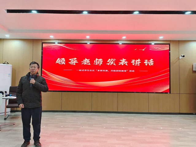 乐三明为活动致辞。他首先强调了各民族团结一家亲的重要性,接着,表达了对此次“多彩民族,共绘团结画卷”系列活动的祝愿,希望活动能够成功举办,成为一座坚固的桥梁,让各民族同学之间增进友谊,让理解与尊重在同学们心中生根发芽,绽放出绚烂多彩的团结之花。