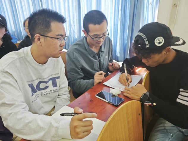 在互动环节,四郎措姆讲授了藏文的元音和30个辅音字母,详细讲解每个字母的发音和含义,通过示范和练习,让同学们了解藏文的基础元素。藏族同学们还担任小老师,亲手教大家藏文书写的笔顺和技巧。