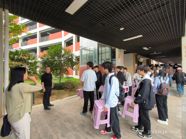 11月14日下午一点五十分,教科院2023级教育学专业的学生在四初正门集合打卡,并由教师带队进入校园。本次见习的任务是进班听课观摩学习,按照年级划分,教科院2023级教育学专业的学生按照光谷四初副校长陈小林和带队教师万爱莲的分组,进入七年级11个班级随堂听课。同学们初入校园,对光谷四初校园和本次见习活动充满好奇与热情。