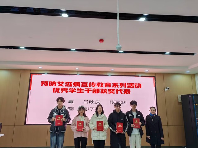 为总结预防艾滋病宣传教育系列活动成果,加深师生对艾滋病的认识和理解,增强师生的自我保护意识与能力,营造浓厚校园氛围,12月13日中午12:30,学校在实验楼S6201教室举行预防艾滋病宣传教育系列活动总结表彰大会。学工部部长文敏,后勤保障部党总支书记刘晖,教育科学学院分党委书记乐三明,后勤保障部汪国英主任,教育科学学院分团委副书记唐志强等领导老师、获奖学生、教育科学学院学生干部代表参会,教育科学学院23级教育学1班王俪嵋主持会议。