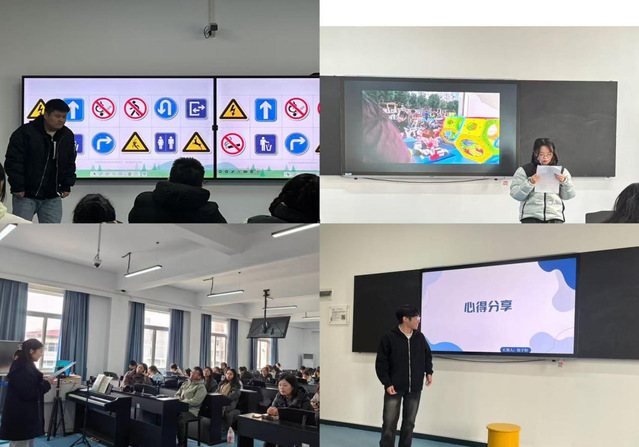 紧接着,各园所实习生代表结合园所特点从实习经历、心得体会等方面依次进行汇报。实习生生动地描述了实习过程中的点点滴滴,让在场的2022级学前教育学生深受启发。同时实习生带来了3个集体教学活动,展示了他们在实习期间所学所想的实践成果。