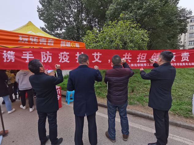 本网讯(通讯员黄书妍张真卿)12月1日,我校召开题为“携手防艾抗疫,共担健康责任”系列活动。学工部部长金殿中、副部长李小兵,数学与经济学院分党委书记钟建国,教育科学学院分党委书记乐三明参与线下签名环节。