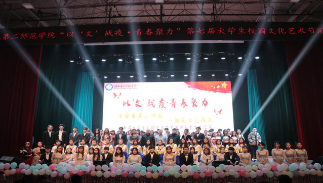 本网讯(融媒体见习记者丁舟雪陈梦婷陈方圆李岩茸)12月4日晚,我校“以‘文’战疫,青春聚力”第七届“青窗鸢尾启师苑,一路笙歌花满天”大学生校园文化艺术节闭幕式于大礼堂举行。校团委副书记陈扬、马克思主义学院党总支副书记宋平、校团委老师、各学院分团委书记、副书记参加此次活动。