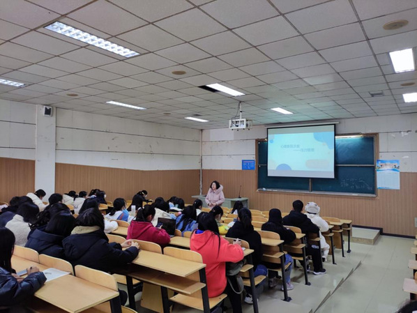 本网讯(融媒体见习记者倪荣鑫)12月23日下午,我校大学生心理健康教育中心在阶梯教室2举办“第十二期心理沙龙——压力管理”活动。大学生心理健康教育中心副主任郑婧担任主讲人。各学院心理委员、学生代表参加活动。