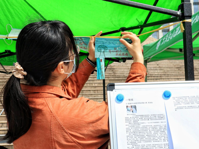 活动期间,同学们积极参与,为自己和他人写下祝福和美好祝愿,吸引路过的同学驻足参加。活动现场充满温暖与美好。