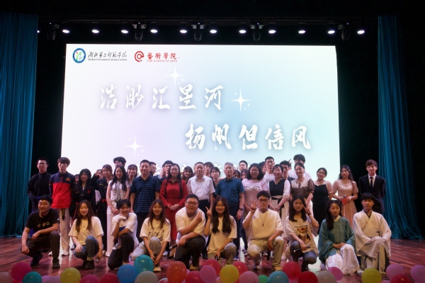 本网讯(融媒体见习记者黄仁飞 阮慧萍)6月1日晚,我校在大礼堂举行“浩渺汇星河,扬帆但信风”大学生心理音乐晚会。学工部部长金殿中、副部长李小兵,艺术学院党委书记雷静和、副书记夏永祥,艺术学院学工办主任李京,大学生心理健康教育中心专职教师莅临现场担任嘉宾。