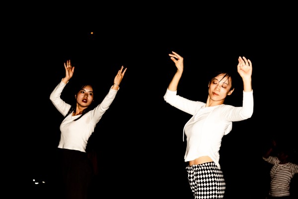 每当夜幕降临,成员奇特的舞队在大屏幕舞台下排成整齐队伍,跟随音乐的节奏,尽情跳着广场舞。抬手、摆臂、旋转、跳跃,众人的舞蹈动作随着音乐风格的变化而变换不停,或柔美若绸缎,或活泼如清泉。全场动作整齐划一,一旁观望的学生也被感染着踩节拍。