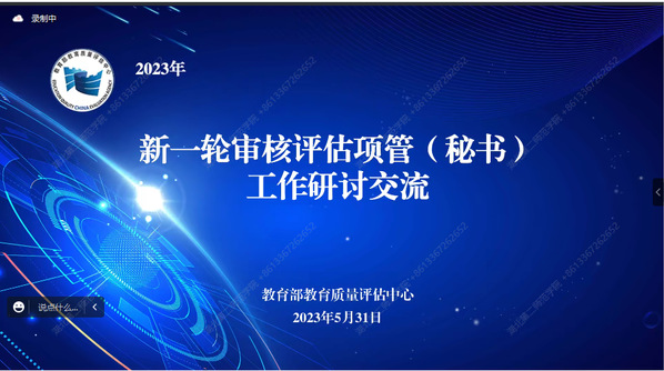 本网讯(通讯员简红莲)5月31日,教育部教育质量评估中心组织召开线上“新一轮审核评估项管(秘书)工作研讨交流会”。2022年学校推荐的本科教育教学审核评估项目管理员、本科教育教学审核评估专家组秘书等参加培训。