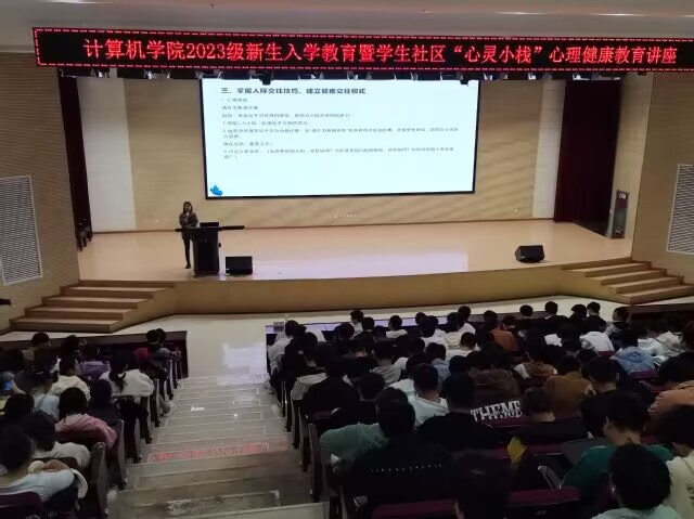 本网讯(通讯员郑国媛梅一峰)11月9日下午,计算机学院在新图书馆二号报告厅举办以“人际关系与适应”为主题的心理健康教育讲座。讲座邀请了maya86com 心理健康教育中心邵航老师担任主讲人,心理健康工作指导老师冯诚、辅导员郝阳老师及2023级全体新生共同参与。