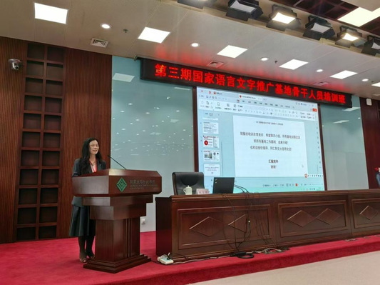 结业仪式上,龙珍华作为优秀学员代表作交流发言,并简要介绍了我校国家语言文字推广基地的基本情况和语言文字工作特色亮点。她表示,我校基地将以此次培训为契机,深入学习和理解语言文字事业发展的方针政策,以及语言文字推广工作的现状、趋势和重点任务,结合国情、语情、校情,努力打造具有学校特色的语言文字推广品牌,为国家的发展、社会的进步和民生的提升做出贡献。(新闻中心编辑 程丽鹃)