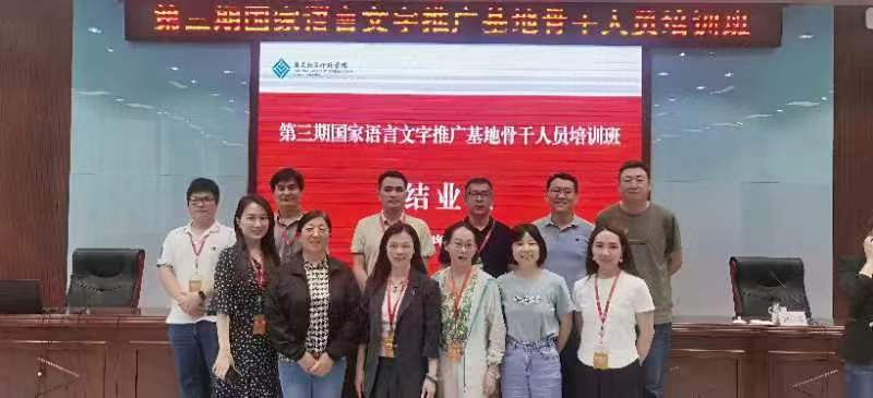 本网讯(通讯员陈艺春 胡晓玲)5月17-21日,教育部语言文字应用管理司第三期国家语言文字推广基地骨干人员培训班在国家教育行政学院隆重举办。本次培训班为期5天,全国范围内65家基地选拔出130名优秀骨干人员参加。我校文学院院长、国家语言文字推广基地执行主任龙珍华教授,教务处副处长、校语委办主任邓芳副教授参加了此次培训交流活动。