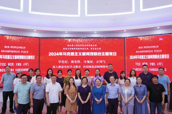本网讯(通讯员彭俊燃葛怡嘉)6月20日下午 ,党委宣传部党支部、新闻与传播学院教师党支部和学生党支部联合举行“深入推进党纪学习教育,共同缔造清朗网络环境”2024年马克思主义新闻观联合主题党日。校党委常委、副校长陈勇到会指导,机关党委主要负责人王青到会督导。