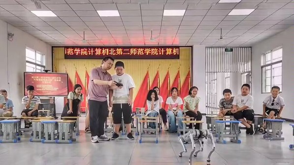 在体验营现场,一系列AI智能设备和应用吸引了众多师生的目光:会握手的机械犬、会战斗的机械车、能识别人年龄和识别物体的心理测验机器、能进行对战的机甲等,让在场的师生们深切感受到了科技的力量,一度将活动推向了高潮。在“沉浸式”和“互动式”的体验过程中,师生们纷纷表示,这不仅是一场科技盛宴,更点亮了乡村儿童的科技梦想。