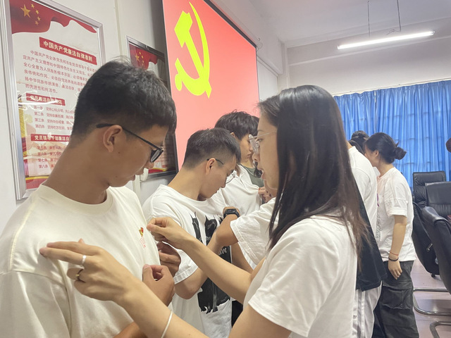 最后,毕业生代表为新发展党员佩戴党徽,并举行集体入党宣誓仪式。支部书记何思琪作强调,她对新党员的加入表示了祝贺,同时也提出了明确的要求,给予了殷切期望。希望大家能够牢记党的宗旨,积极发扬党的优良传统,立足本职岗位创先争优,充分发扬先锋模范作用,为建设体育强国、实现中华民族伟大复兴的中国梦贡献自己的力量。